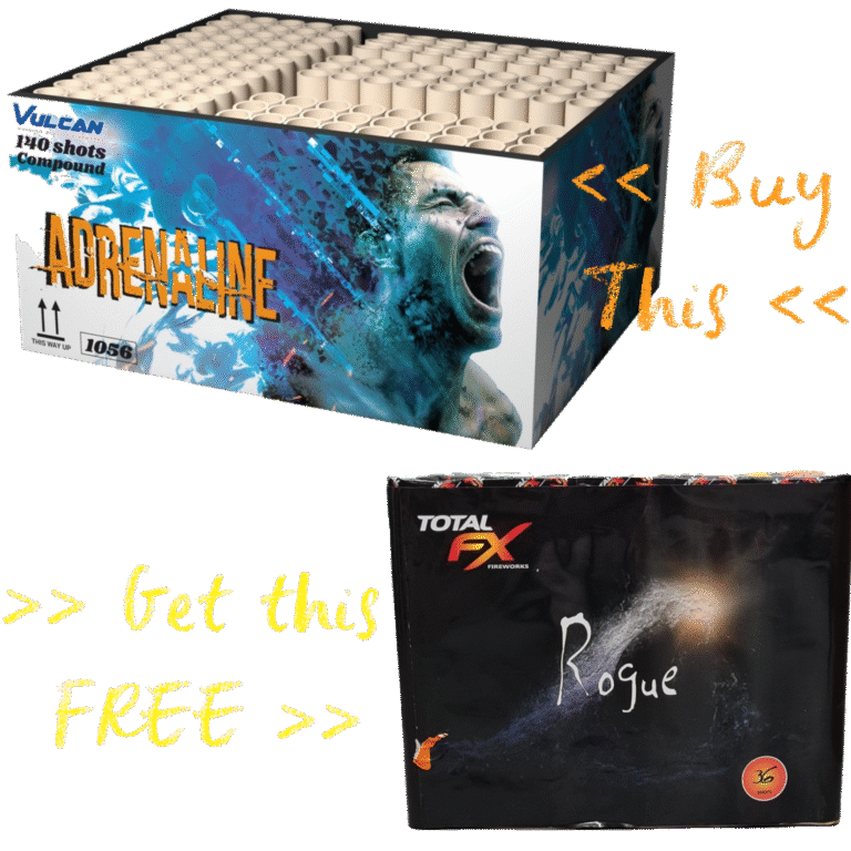 The adrenaline rushes through your body at the size of this mega compound. 144 shots of which 80 shots are in a fabulous fan shape compound firework from Vulcan Pyrotechnics. Screaming, crackling comet tails start the ball rolling and from then on, its non-stop.